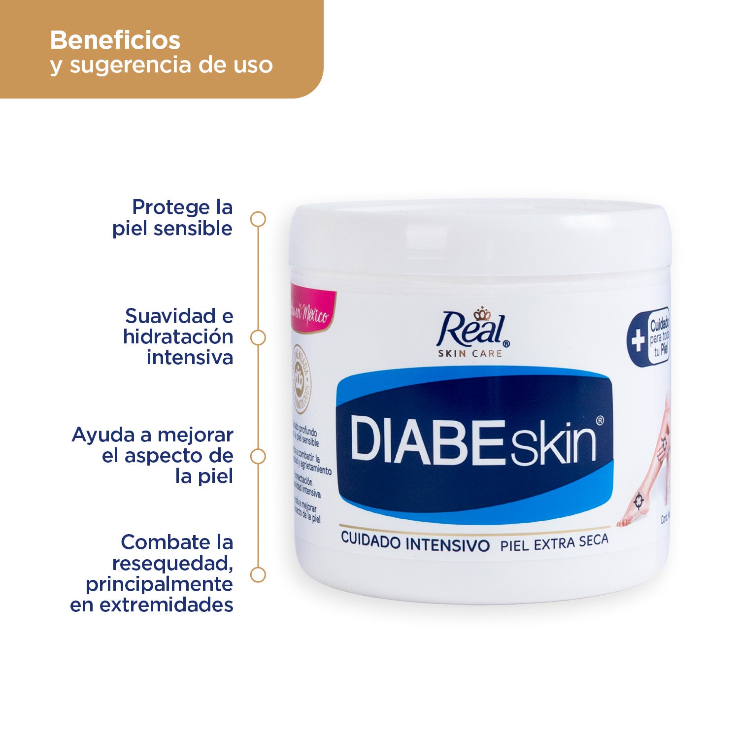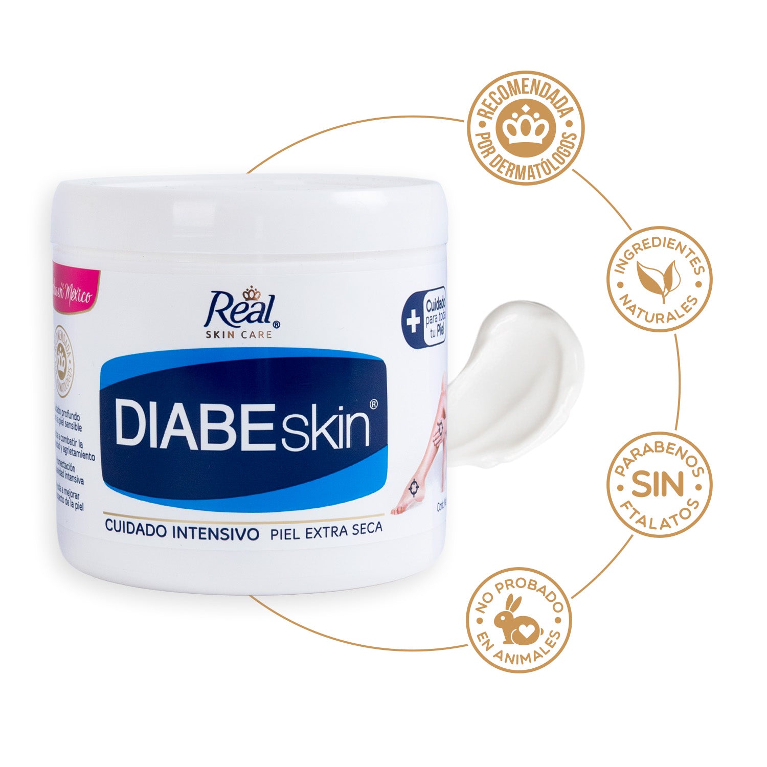 Diabeskin es la crema diseñada para ofrecer humectación extrema en zonas con resequedad y agrietamiento en personas con problemas profundos en la piel ocasionados o agravados por la diabetes.