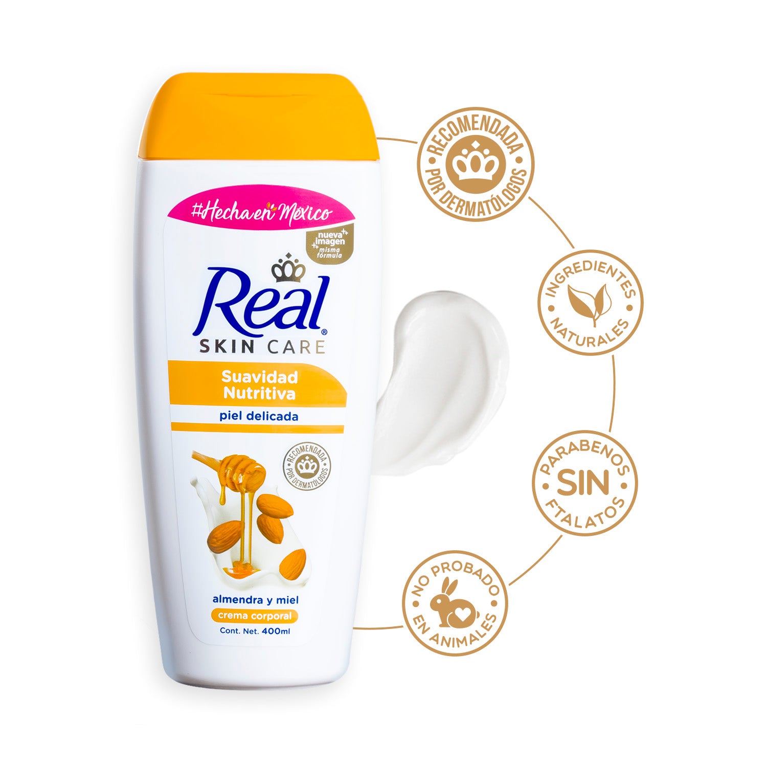 La fórmula de nuestra Crema Corporal Líquida Real Suavidad Nutritiva, adicionada con almendras y miel, ayudará a nutrir y proteger la piel de toda tu familia. Además, te brinda un agradable aroma para sentir la piel más hidratada y cuidada que nunca.