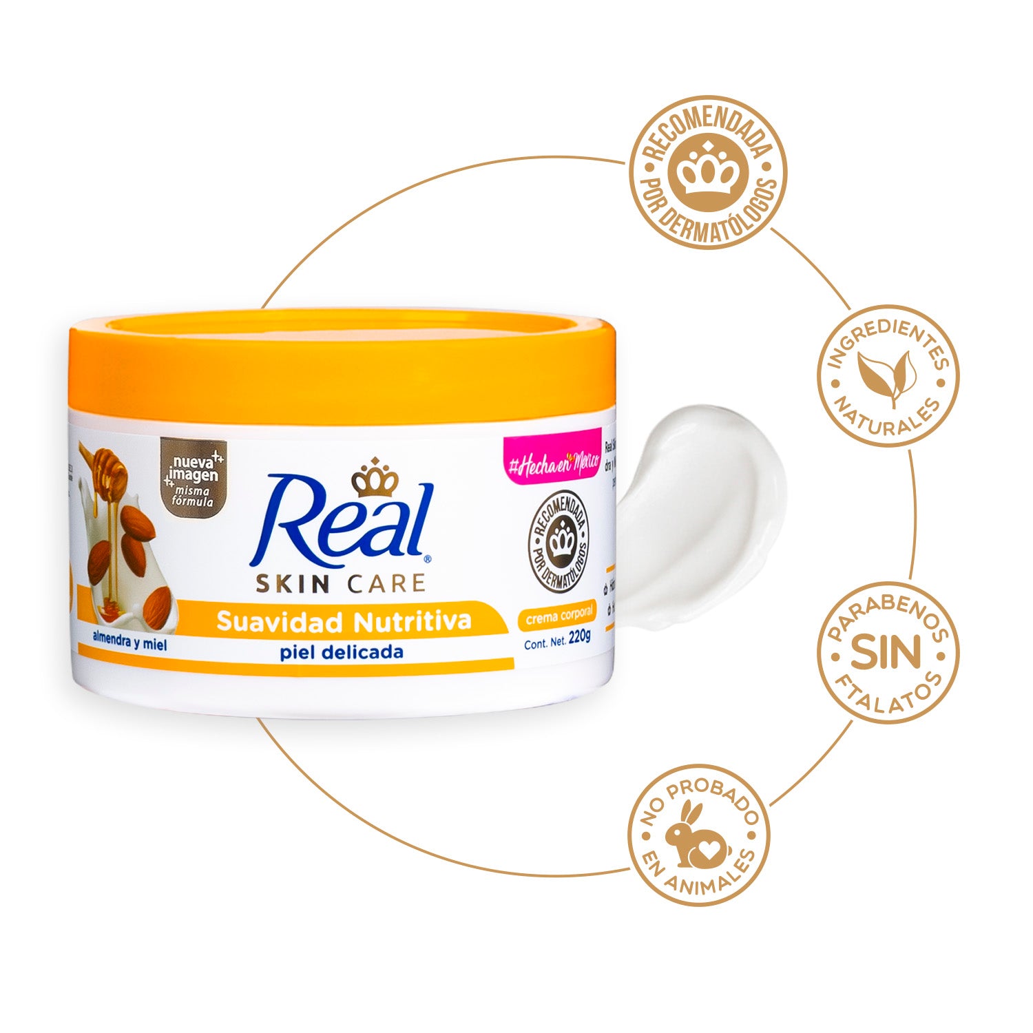 La fórmula de Crema Sólida Real Suavidad Nutritiva, adicionada con almendras y miel, ayudará a nutrir y proteger la piel de toda tu familia. Además, te brinda un agradable aroma para sentir la piel más hidratada y cuidada que nunca.