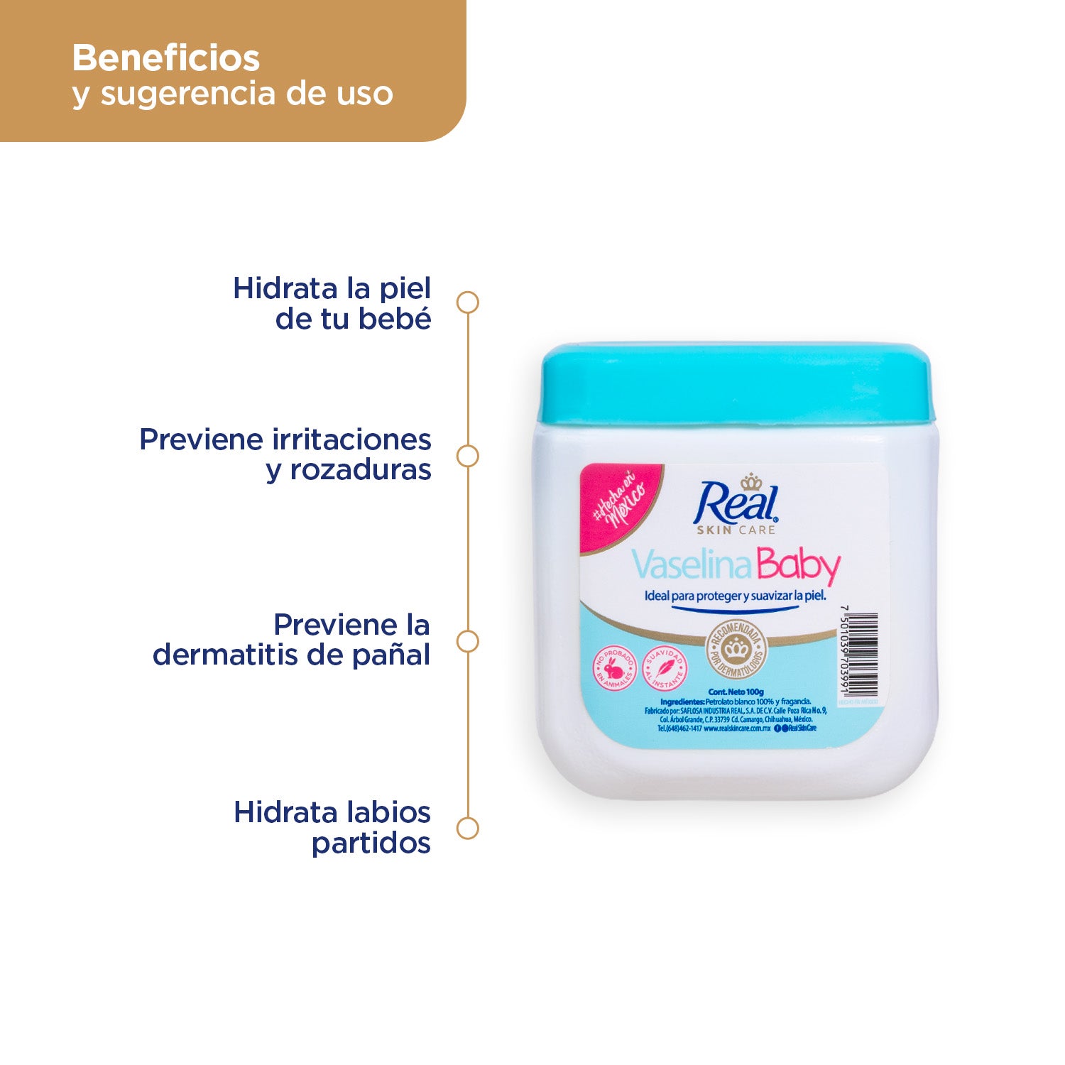 Vaselina Baby que te ayuda a proteger y suavizar la piel de tu bebé, dejando un suave aroma y proporcionando alivio a la piel seca o sensible, debido a la rozadura de pañal.